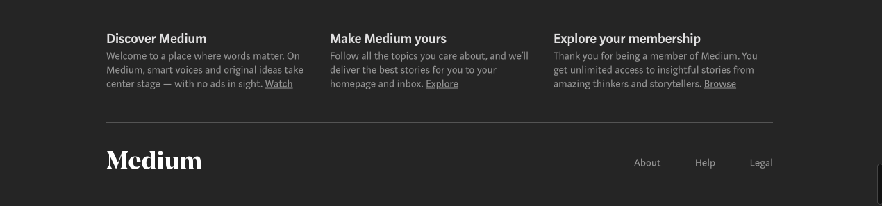 푸터는 일반적으로 비슷한 내용과 형태를 갖추지만, 페이지에 제시된 정보를 바탕으로 커스터마이징 되기도 합니다. 특히 다수의 사용자가 있는 사이트는 상황별 푸터를 적용해 사용자마다 다른 내용을 보여줍니다. 따라서 사용자의 역할이 다른 사이트, 예를 들어 콘텐츠 작성자와 독자로 나뉘거나 회원이나 비회원으로 구분되는 사이트에서 많이 찾아볼 수 있어요.