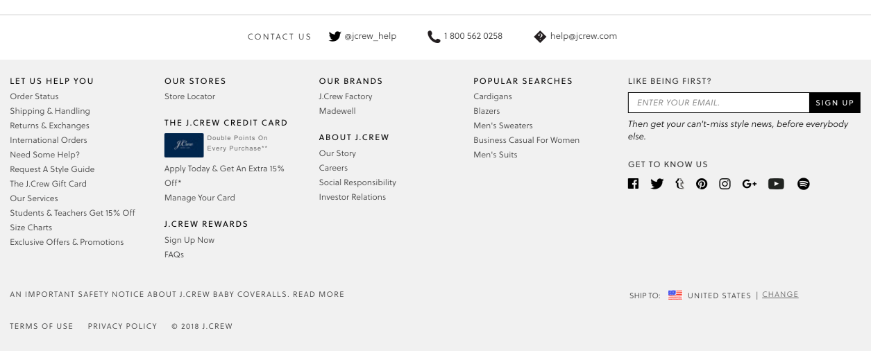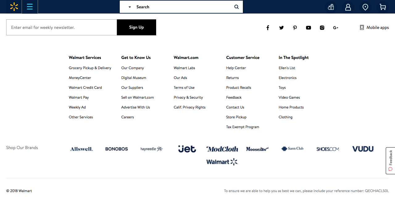 사용자들은 푸터에서 최신 정보를 찾기도 합니다. 쿠폰, 프로모션 등의 정보를 찾거나 제품 출시일을 확인하죠. 이럴 때 관련 정보, 소셜 미디어 링크와 위젯, 뉴스레터를 받을 이메일을 등록하는 푸터가 필요합니다. 다만 푸터에 소셜 미디어 피드 위젯을 넣기 전에 게시물을 업데이트하는 빈도를 확인하세요. 자주 올리지 않는다면 오히려 텅 비어 보여서 사용자에게 나쁜 인상을 줄 수 있습니다.
