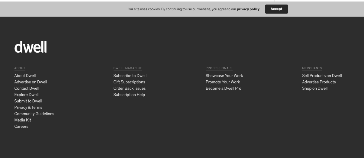 푸터가 1차적인 내비게이션은 아니지만, 사용자들이 여전히 의지하는 영역이기도 합니다. 늘 그 자리에 있다고 예상하기 때문에 보이지 않으면 혼란스러워합니다. 그러니 절대 푸터를 숨기거나 아코디언 기능을 사용하지 마세요. 글꼴 크기도 줄이지 말고 보기 쉬운 색을 사용하세요.
