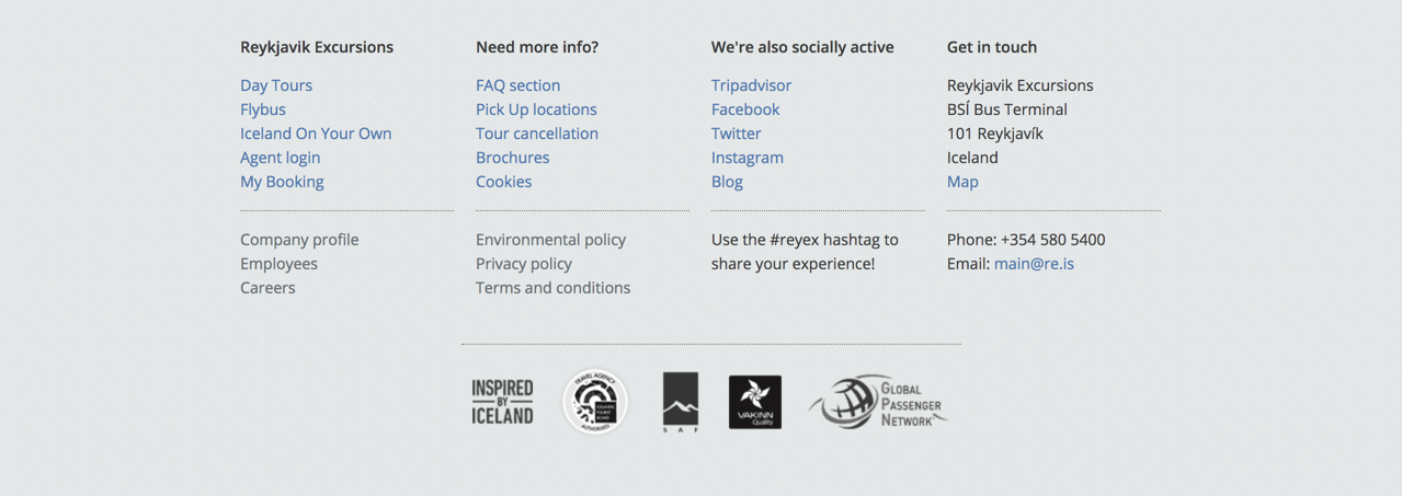 대부분의 사이트는 푸터에 연락처, 구독, 가입, 공유, 이용약관, 인쇄 같은 유틸리티 내비게이션을 포함해요. 이차적인 액션과 툴인데요. 웹사이트 방문자의 만족도와 사용자 경험에 강력한 영향을 미칩니다.