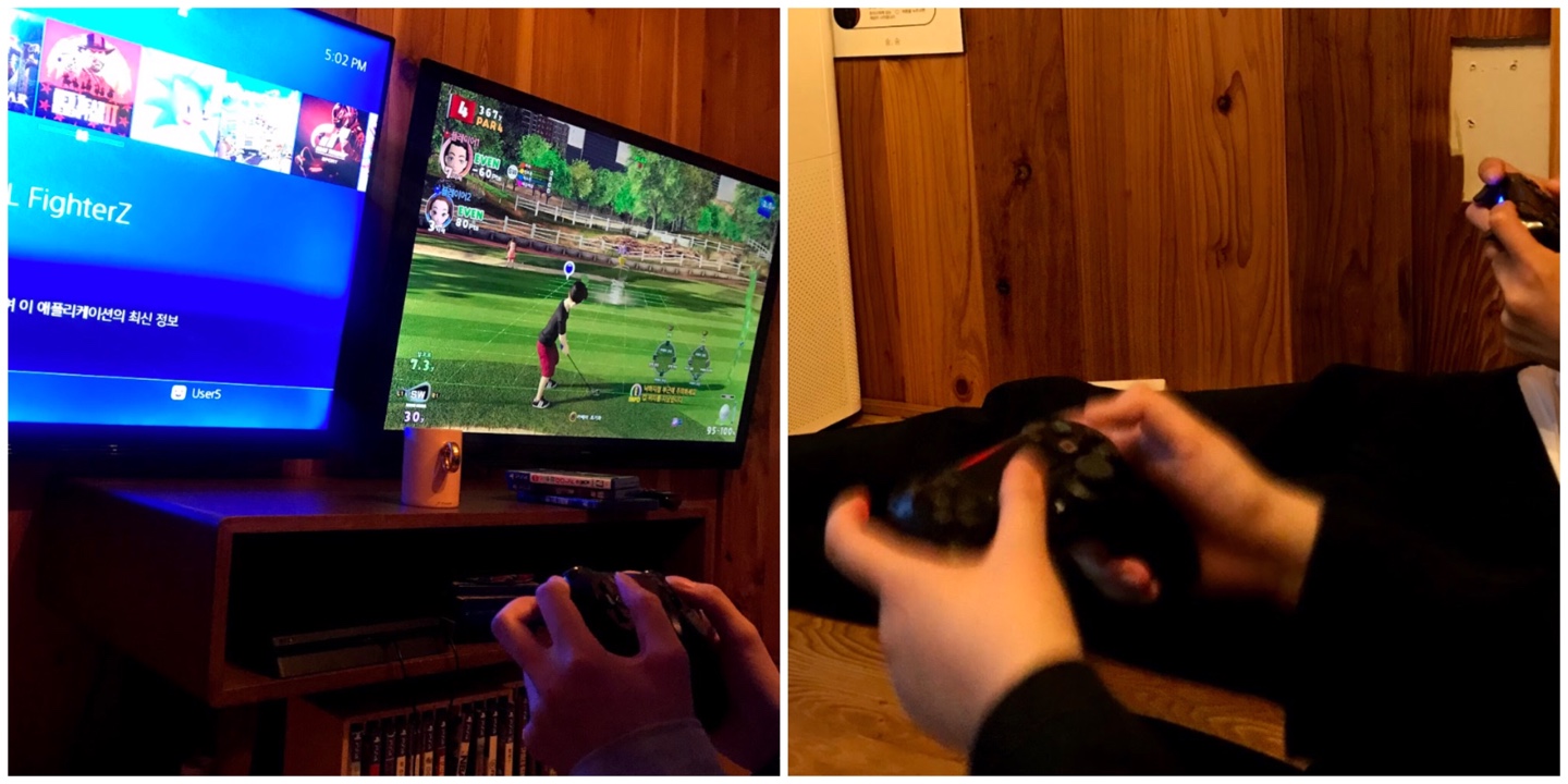 각자의 개성만큼이나 휴식을 즐기는 모습도 다양했습니다. 성진과 누니는 플레이스테이션 게임을 했어요. 레슬링, 골프 등 다양한 장르의 게임으로 승부를 봤죠. 사진 속에 흔들린 누니의 손! 보이나요? 둘이 하는 게임인 만큼 서로의 합이 중요했을 텐데요. 아무리 오래 해도 웃음소리가 끊이질 않았던 걸 보면, 성진과 누니의 게임 시너지가 좋았나 봐요! 어찌나 재밌어 보이던지, 옆에서 구경하던 은비와 강도 함께 게임을 즐겼답니다.