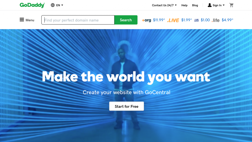 미국의 도메인 등록 기관이자 서버 렌탈 서비스 ‘고 대디’는 검색 바 안에 메시지를 넣어 사용자의 주의를 끌었어요. “가장 적합한 도메인 이름을 찾아보세요”라는 메시지인데 사용자의 이목을 자연스럽게 집중시켜서, 사이트 메인에 있는 소수의 도메인을 보는 것에 그치지 않고 더 적극적으로 사이트를 활용할 수 있게 만듭니다.