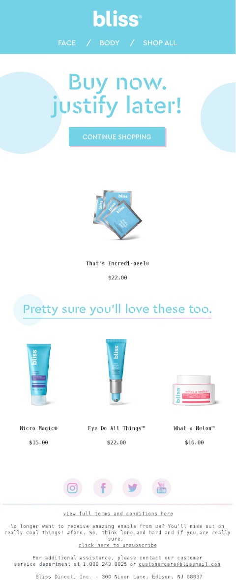 고객은 본인과 관련이 없는 메시지를 수신할 경우 구독을 취소하기 때문에, 전체 고객 데이터베이스에 일괄 메일을 보내서는 안 됩니다. 다행히 Springbot 같은 이메일 자동화 툴이 각 고객에게 맞춤형 메시지를 전하고 적절한 시간에 적절한 고객에게 딱 맞는 이메일을 보내는 데 도움을 줄 수 있어요. 자동화된 이메일로 발송한 각 캠페인의 데이터를 통해 효과를 측정하고, 성과가 높은 항목을 확인할 수 있다는 것 역시 장점입니다.
