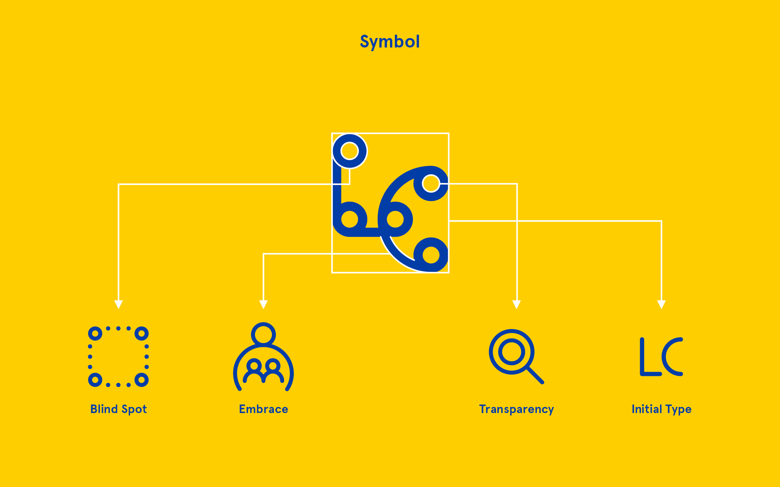 가장자리(사각지대)의 원들은 소외되고 고통받는 아이들이며, 각 원들을 감싸듯이 이어지는 선은 아이들을 끌어안아 품는 라이프오브더칠드런을 상징해요. 가운데가 비어있도록 선으로 묘사한 원은 라이프오브더칠드런의 핵심가치 중 하나인 투명성을 나타냅니다. 그리고 긴 브랜드명의 단점을 보완하기 위해 이니셜(LC)을 바탕으로 심벌을 디자인했어요.