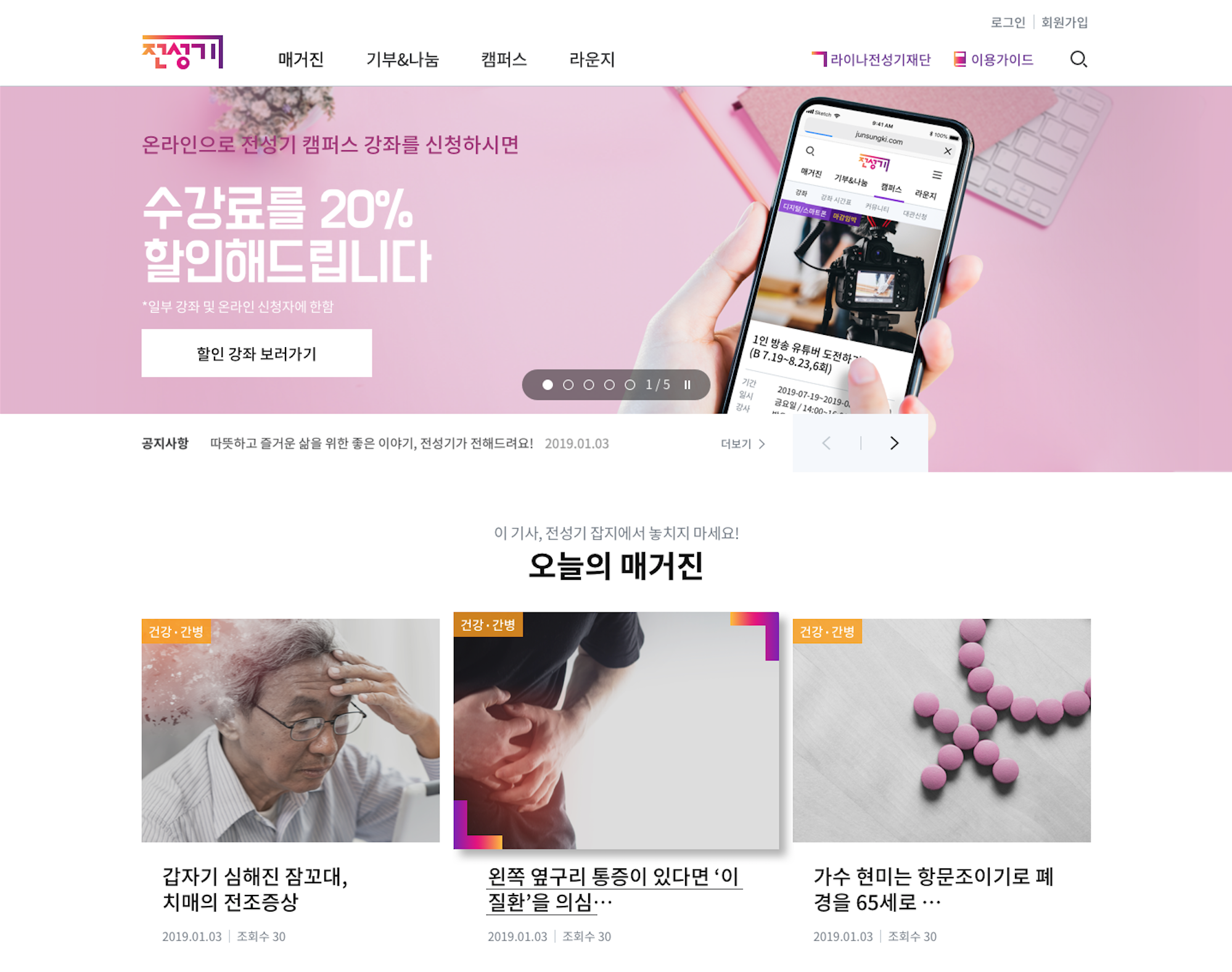 라이나전성기재단의 통합 사이트 ‘전성기닷컴’