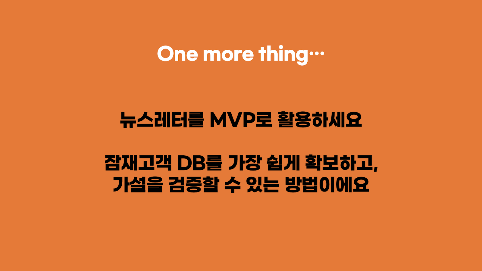 '린 스타트업(lean startup)'에서 얘기하는 MVP(Minimum Viable Product) 아시죠? 뉴스레터를 MVP로 활용하는 방법이 있어서 마지막으로 알려드리려고 해요.