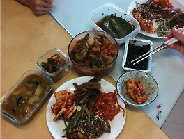 두부를 넣은 김치찌개와 자주 못보던 고기반찬이 보이네요. 또 멸치 볶음도 집집마다 다른 스타일로 만들어져 밥상에 올라왔네요~!!