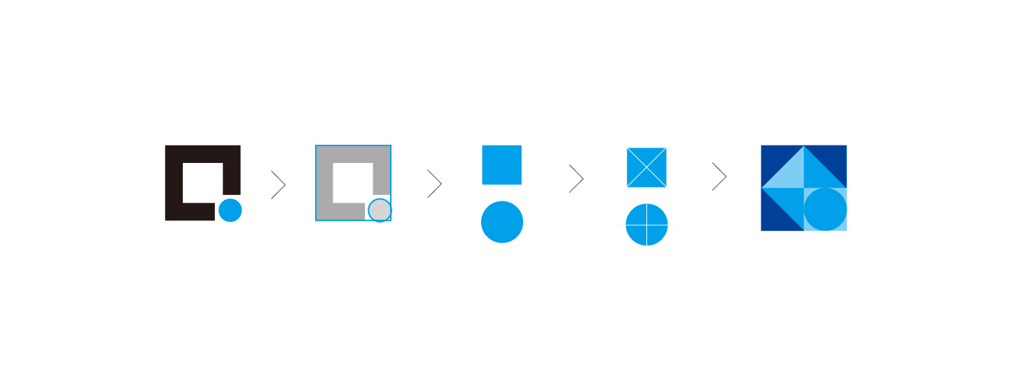 그리고 심벌을 단순화해봤습니다. 심벌을 단순화하면 사각형과 원이 나옵니다. 사각형과 원으로는 패턴을 만들기 어렵기 때문에 사각형과 원을 다시 조각냈습니다. 작은 유닛이 생기니, 다양한 조합이 가능해 패턴을 만들 수 있었습니다.