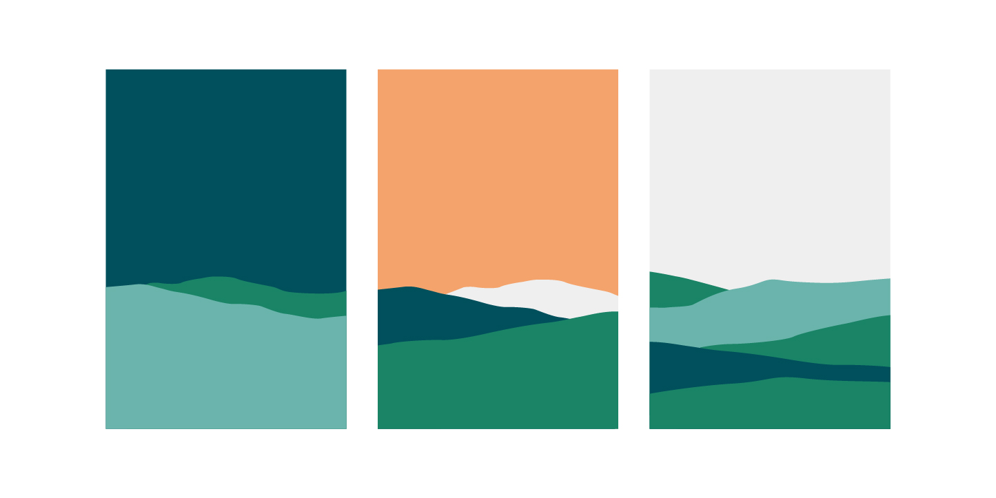 대관령음악제 그래픽 모티브는 로고 개발과 동시에 진행되었습니다. 대관령의 자연을 상징하는 능선을 심벌로 만들면서, 그래픽 모티브도 같은 느낌의 능선을 이용하여 개발해야겠다고 생각했습니다. 심벌이 뜻하는 '자연'이라는 콘셉트를 그래픽 모티브를 통해 브랜드 시각물 전체로 확장하고, 로고와 어플리케이션 간의 시각적인 통일성을 유지하고자 했습니다. 그래서 우선 능선을 면으로 전환하고, 컬러를 입혀봤습니다.