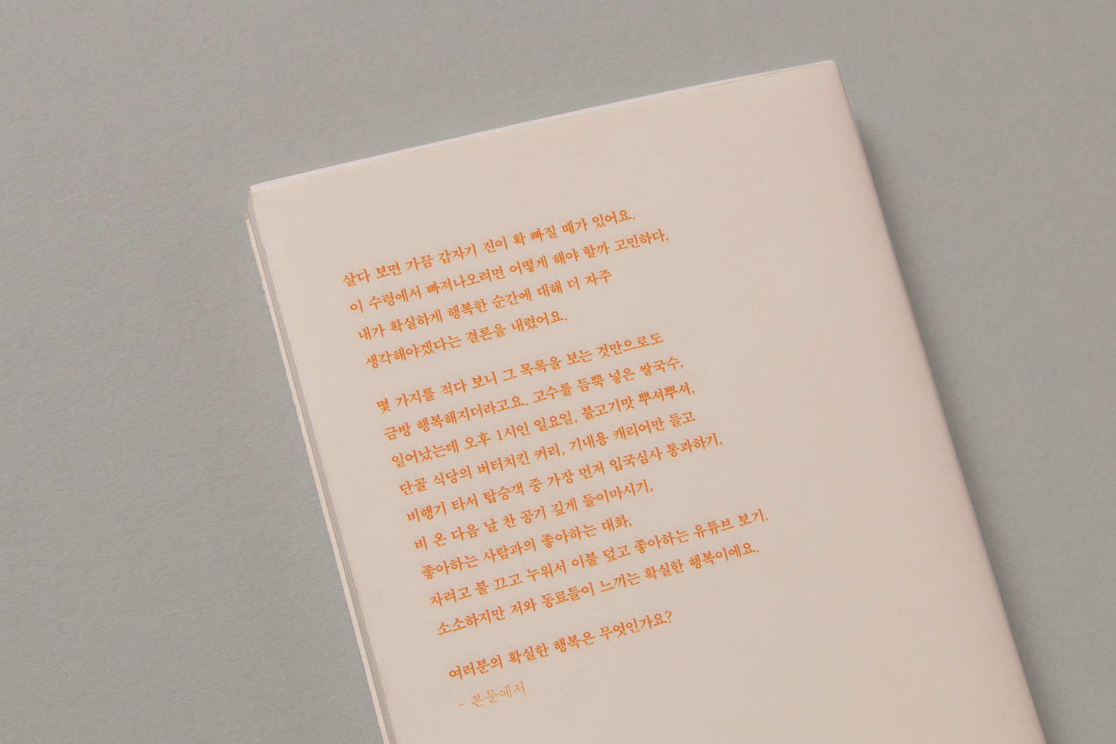구독자와의 거리를 좁히는 방법으로 글을 다루는 사람이 낼 수 있는 아이디어는 '책'이었고, 바로 함께 인사말을 쓰던 팀 동료들에게 공유했어요. 자신 없이 제안했는데 다들 ‘도전해보자'는 긍정적인 반응이어서 힘을 얻었습니다. 그동안 오렌지레터 굿즈 출시를 기다려주셨던 몇몇 구독자분들에게도 좋은 소식이 되겠다고 생각했어요.